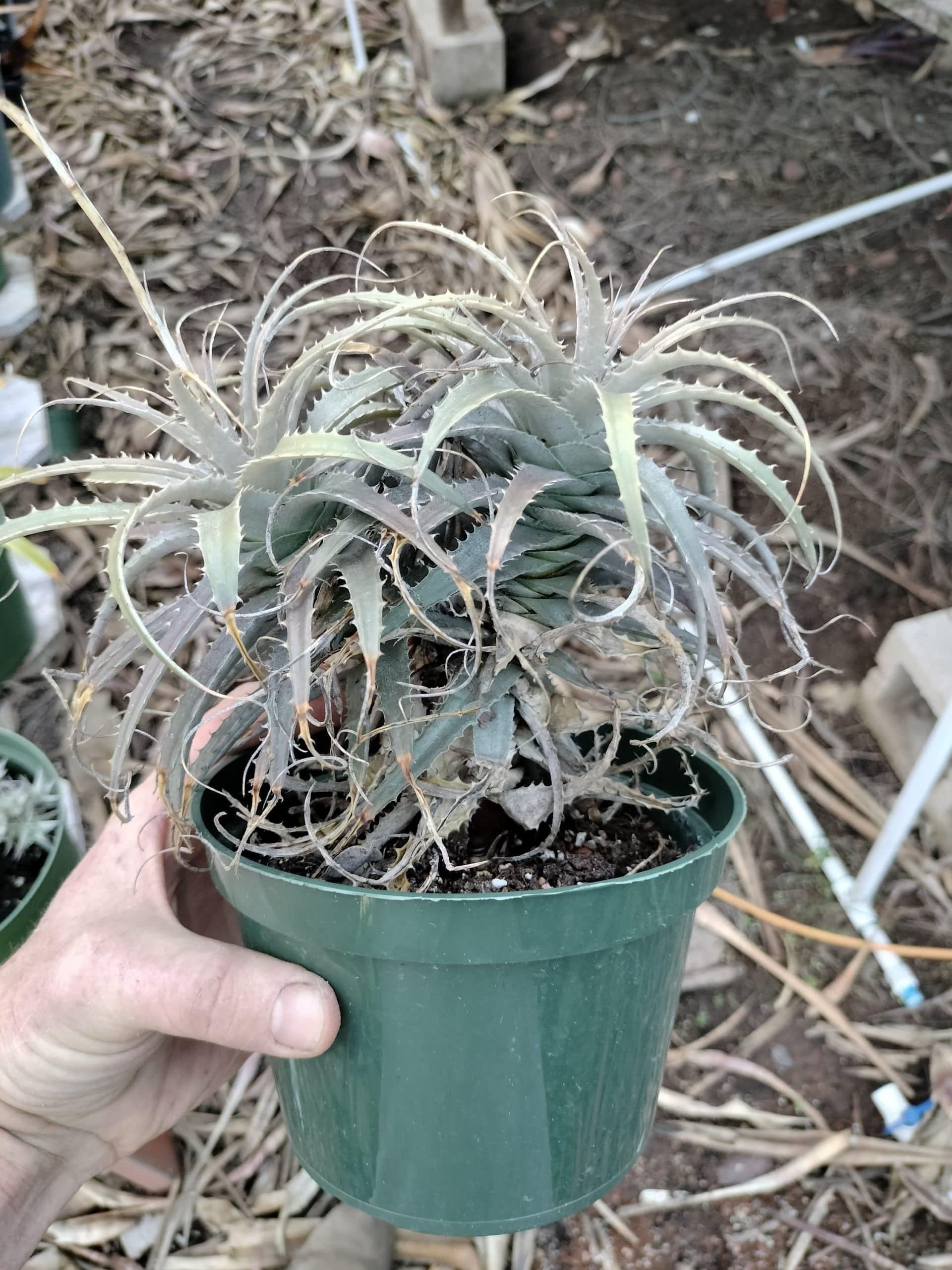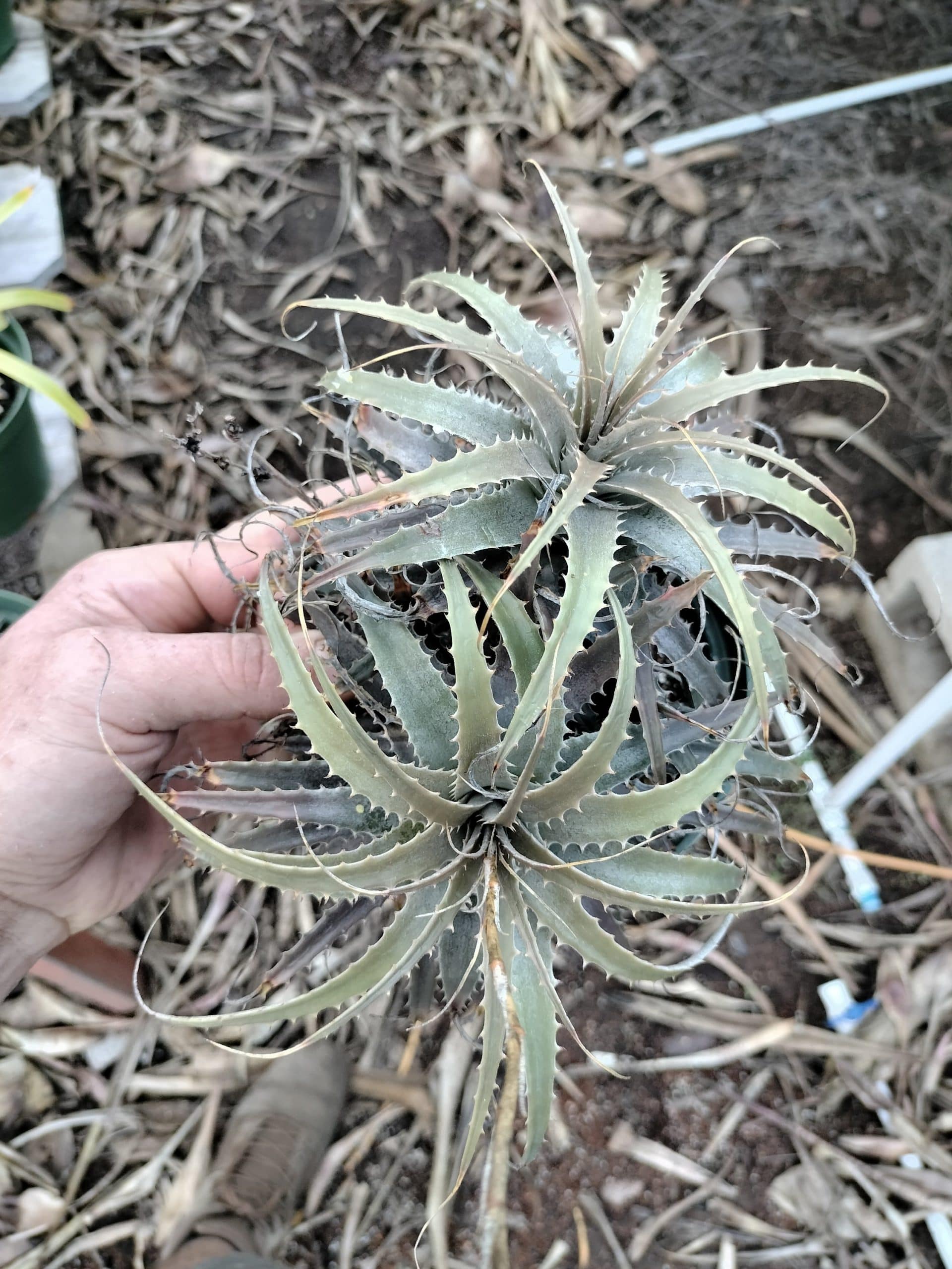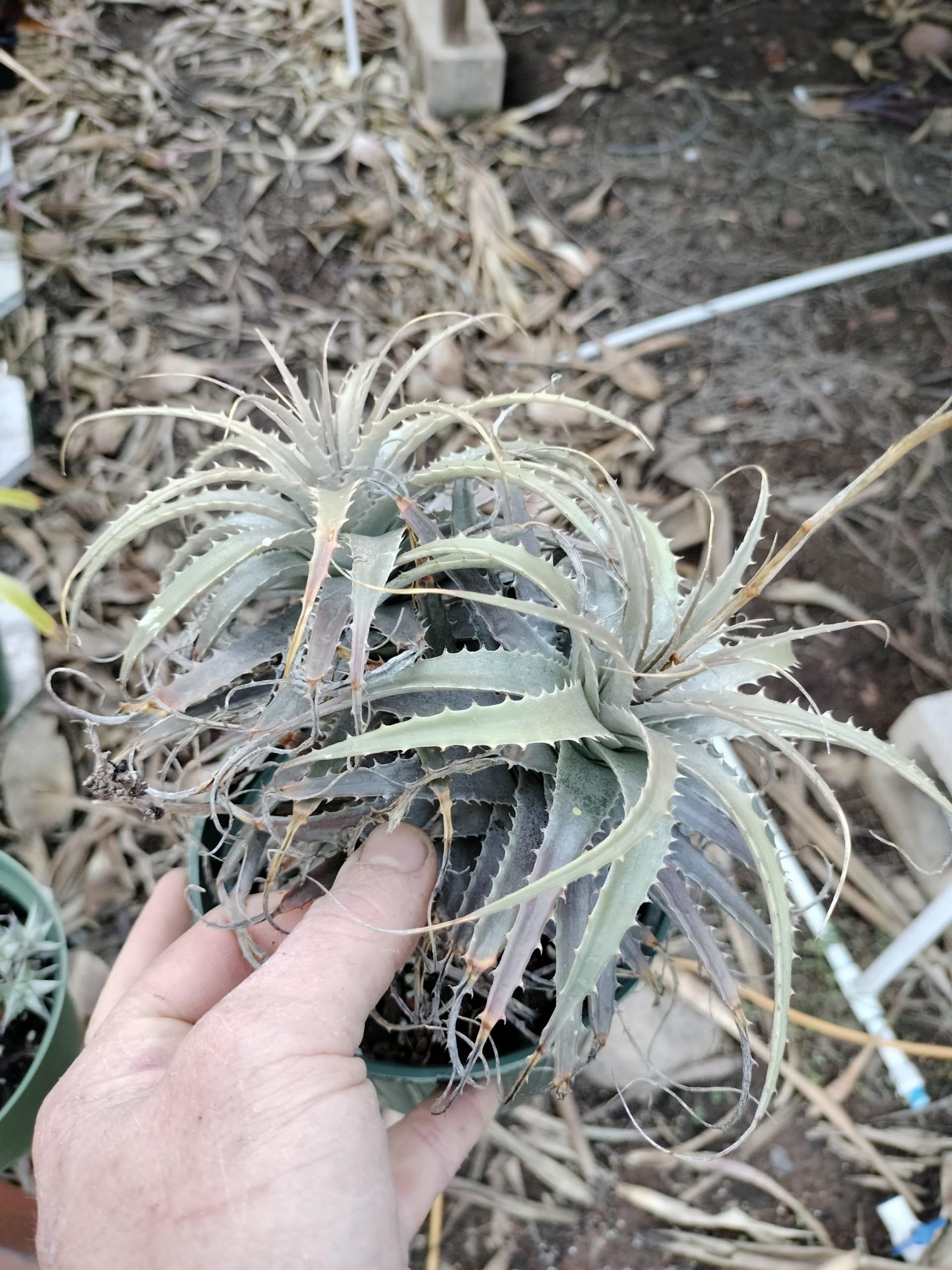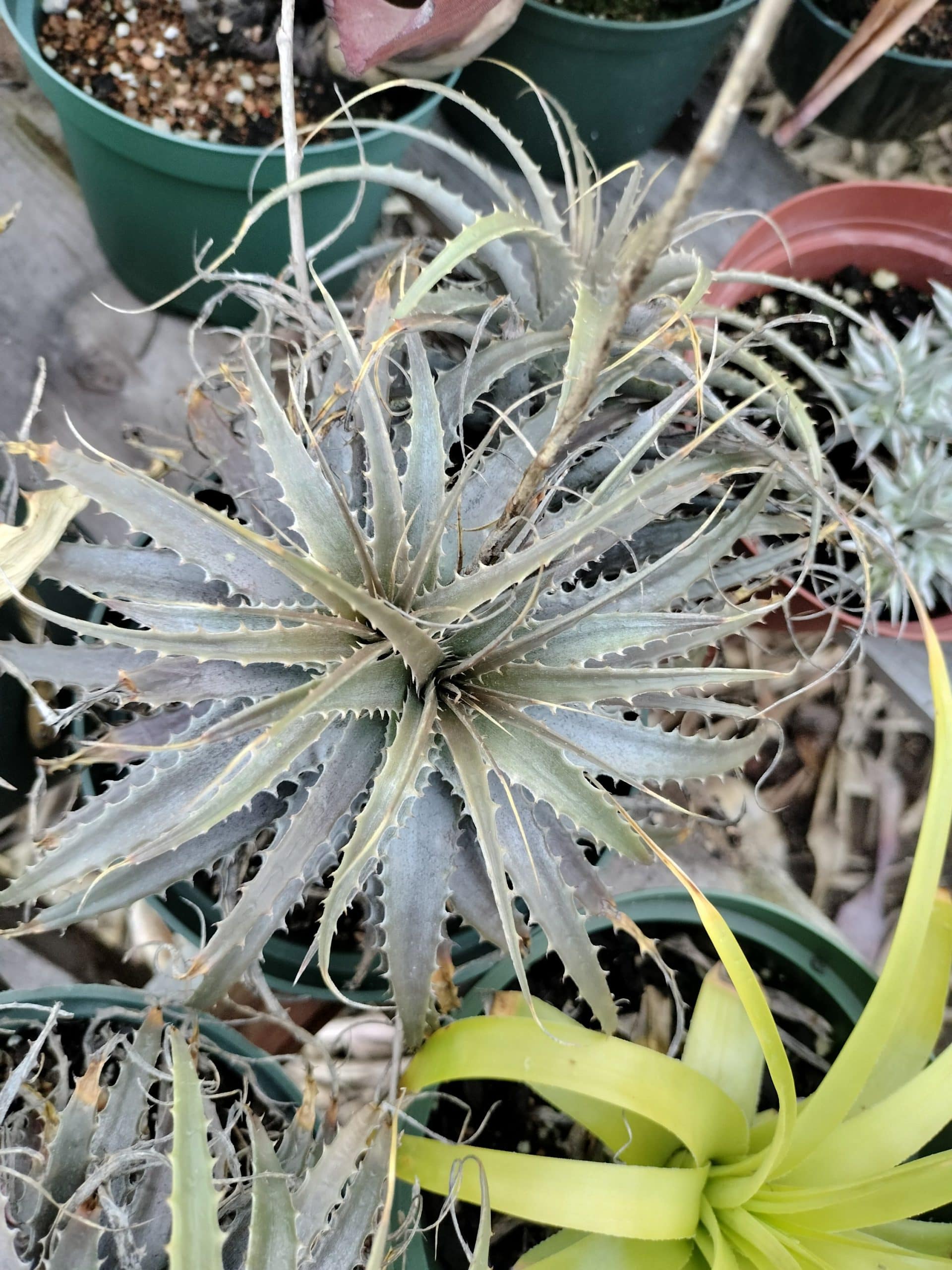 This species of Deuterocohnia is a small, graceful plant. Collected by Dennis Cathcart in Chiquisaca, Bolivia. It has been suggested it is a Deuterocohnia longipetela, but I suspect it is a distinct species. it produces a relatively long scape compared to the size of the rosette, it reblooms on the stalk for many years like other scape-producing Deuterocohnia. Petals start green and the second day they are more yellow.