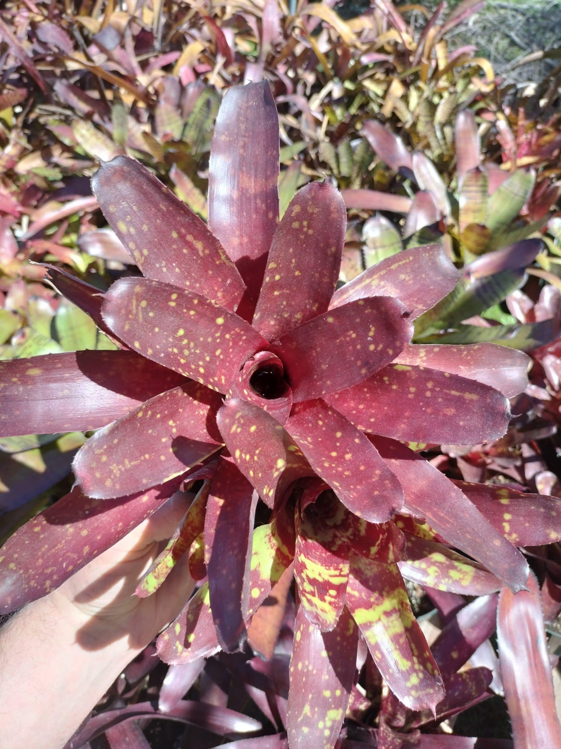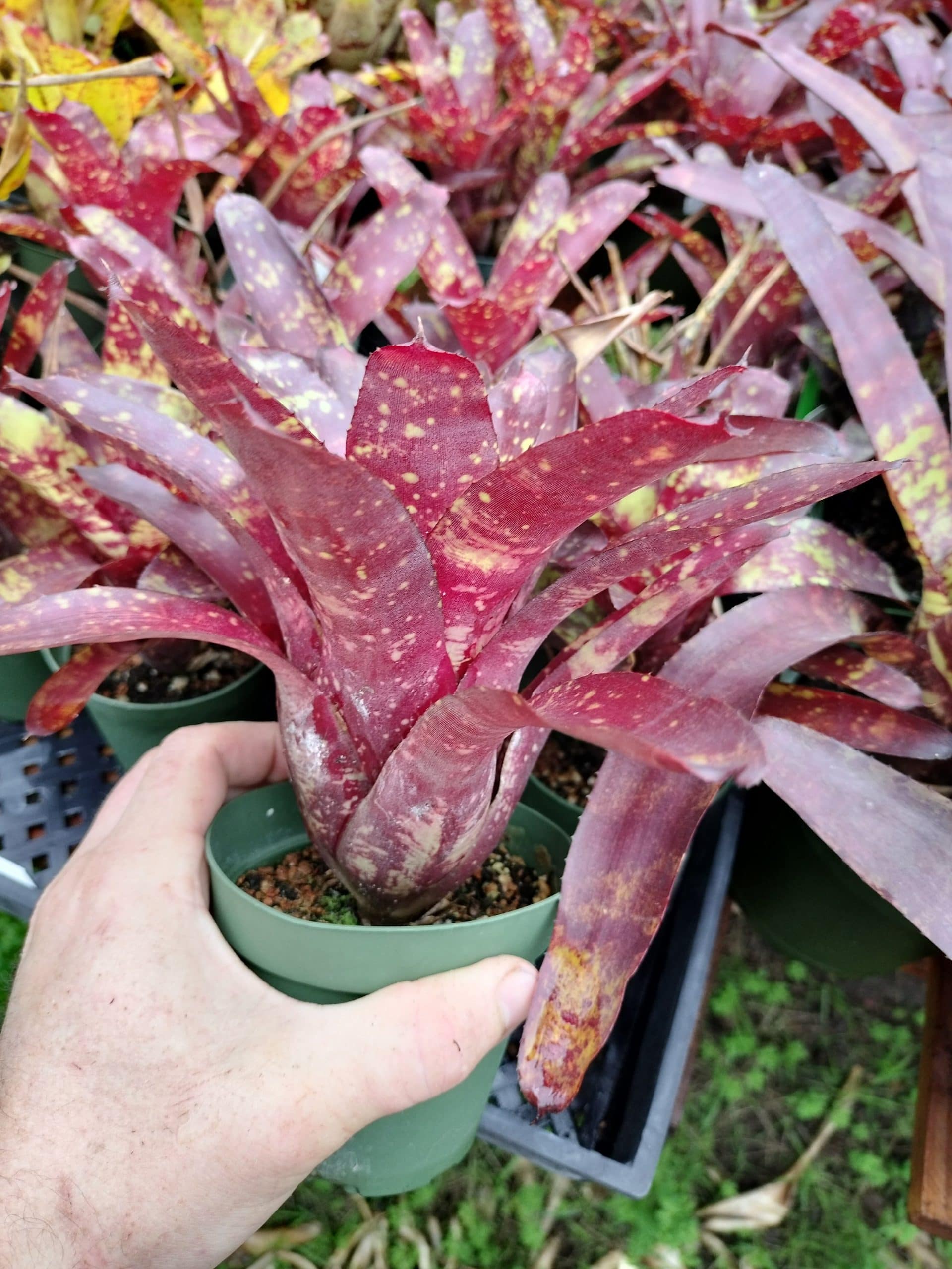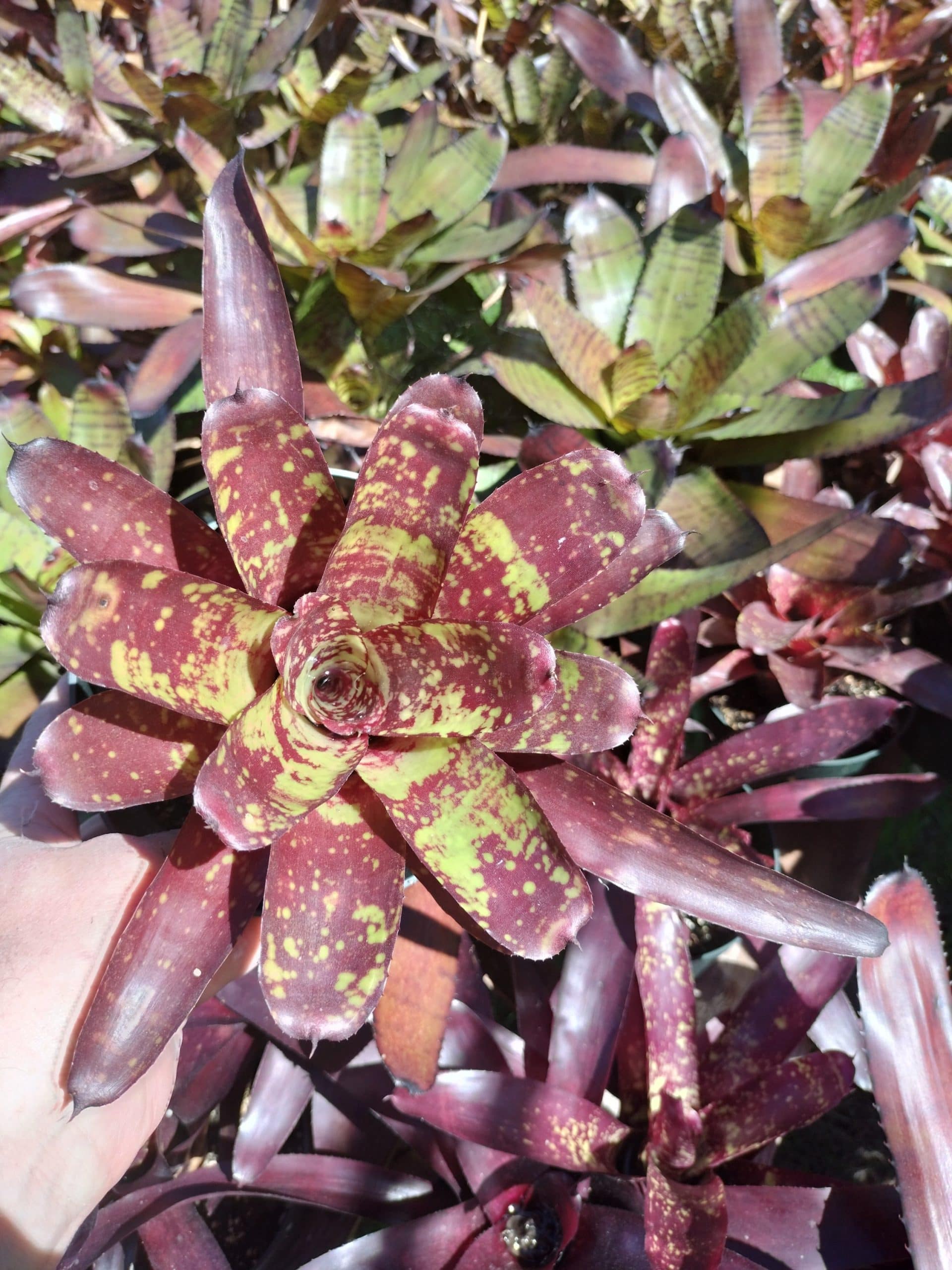 Neoregelia Fairy Paint x chlorosticta is another brightly colored mid-sized plant. Probably more pink to the eye than in the photos, it stands out with its color.