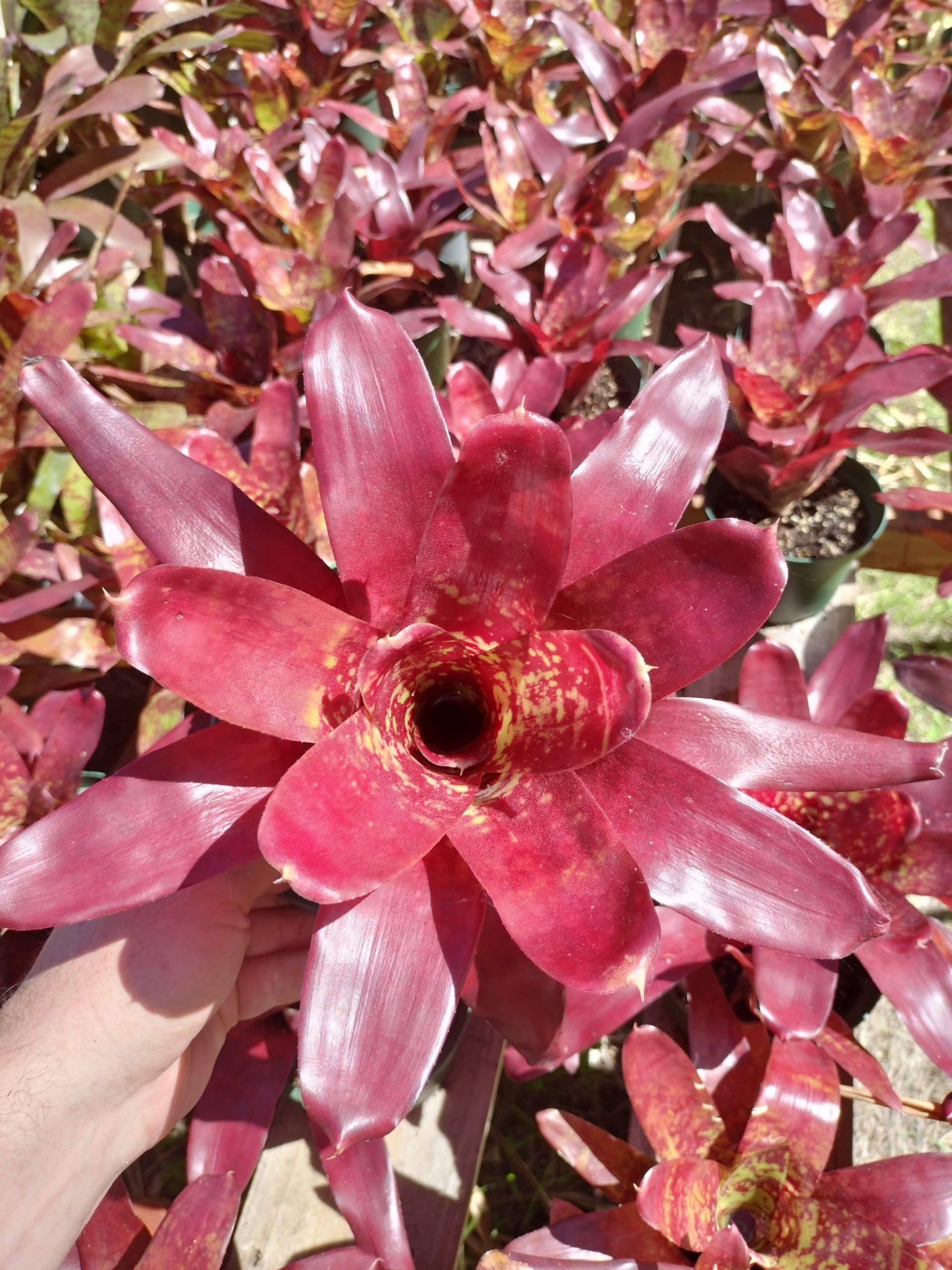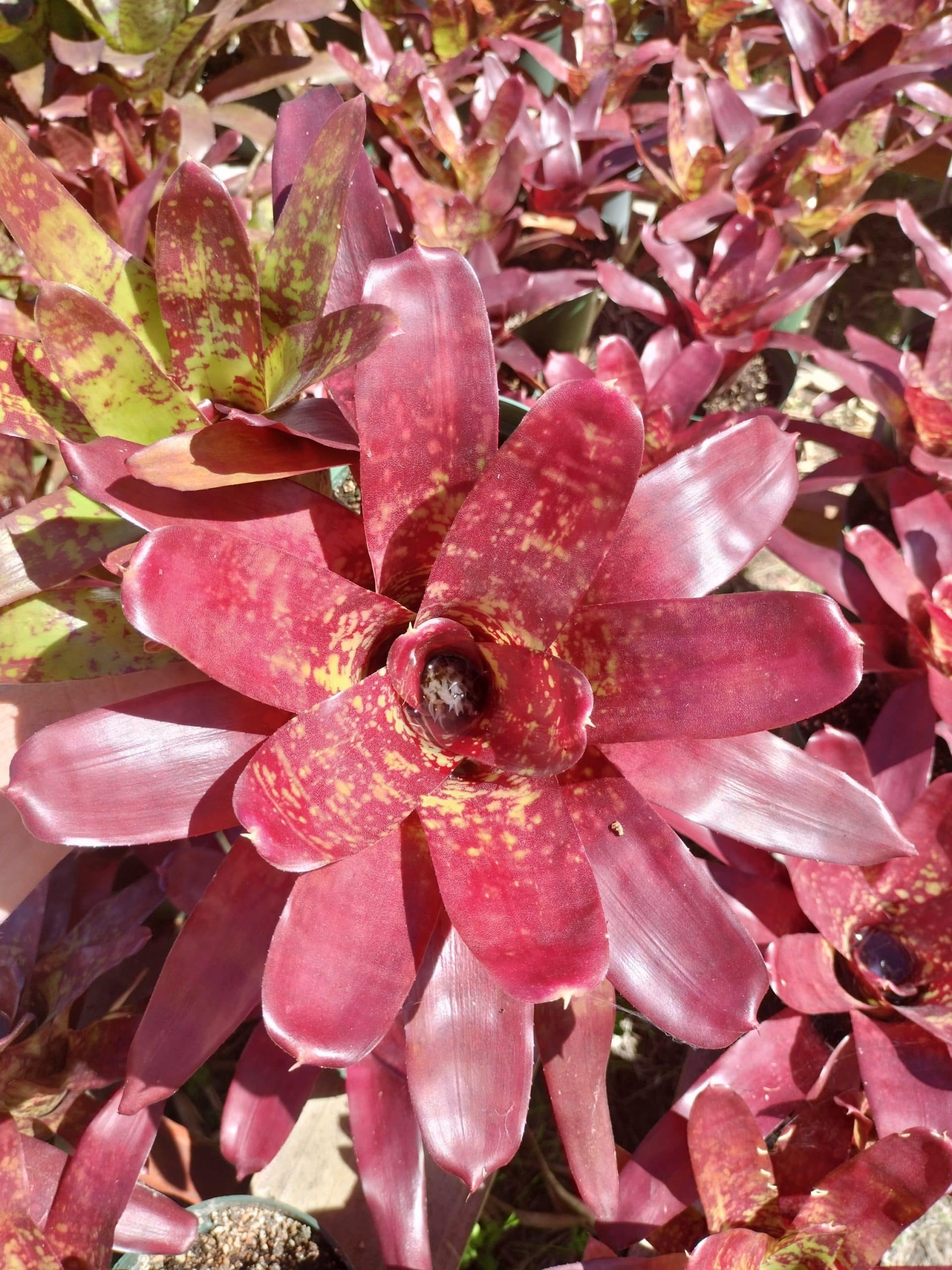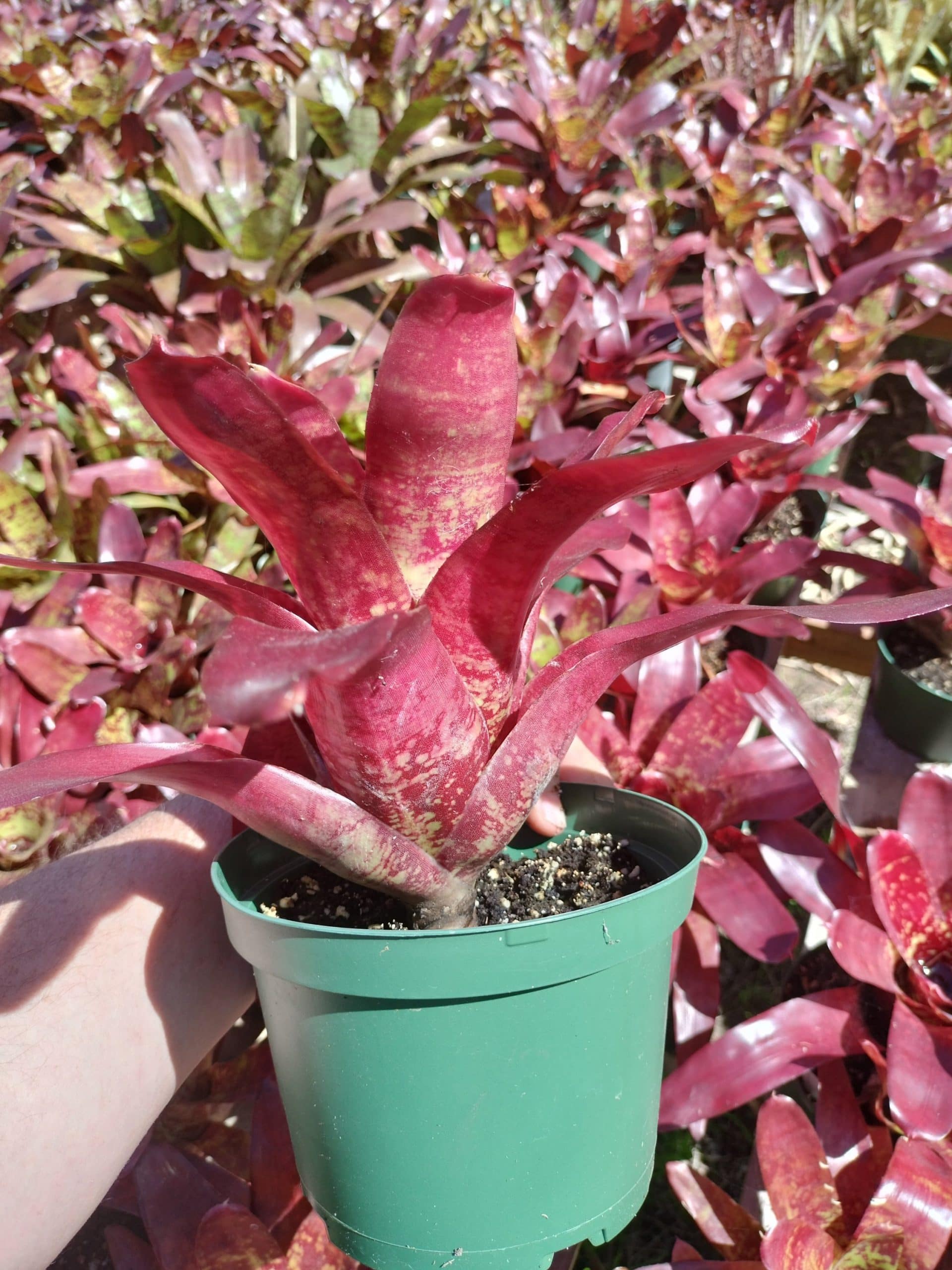 Neoregelia Inca Fire (Neo Inca x Fireball) is a great growing mid-sized plant. When mature it is very red but has more of a pattern as seen in the second photo.