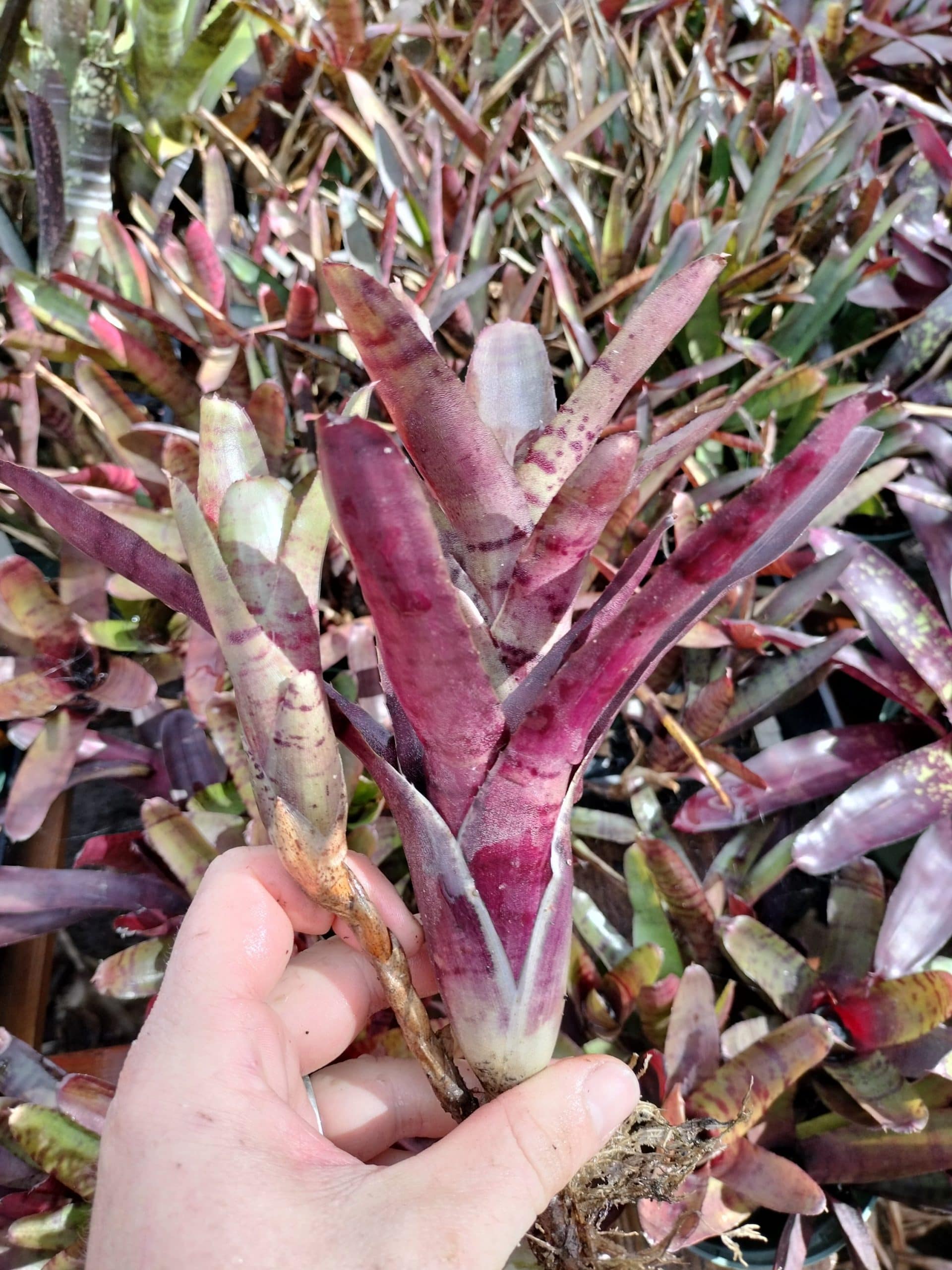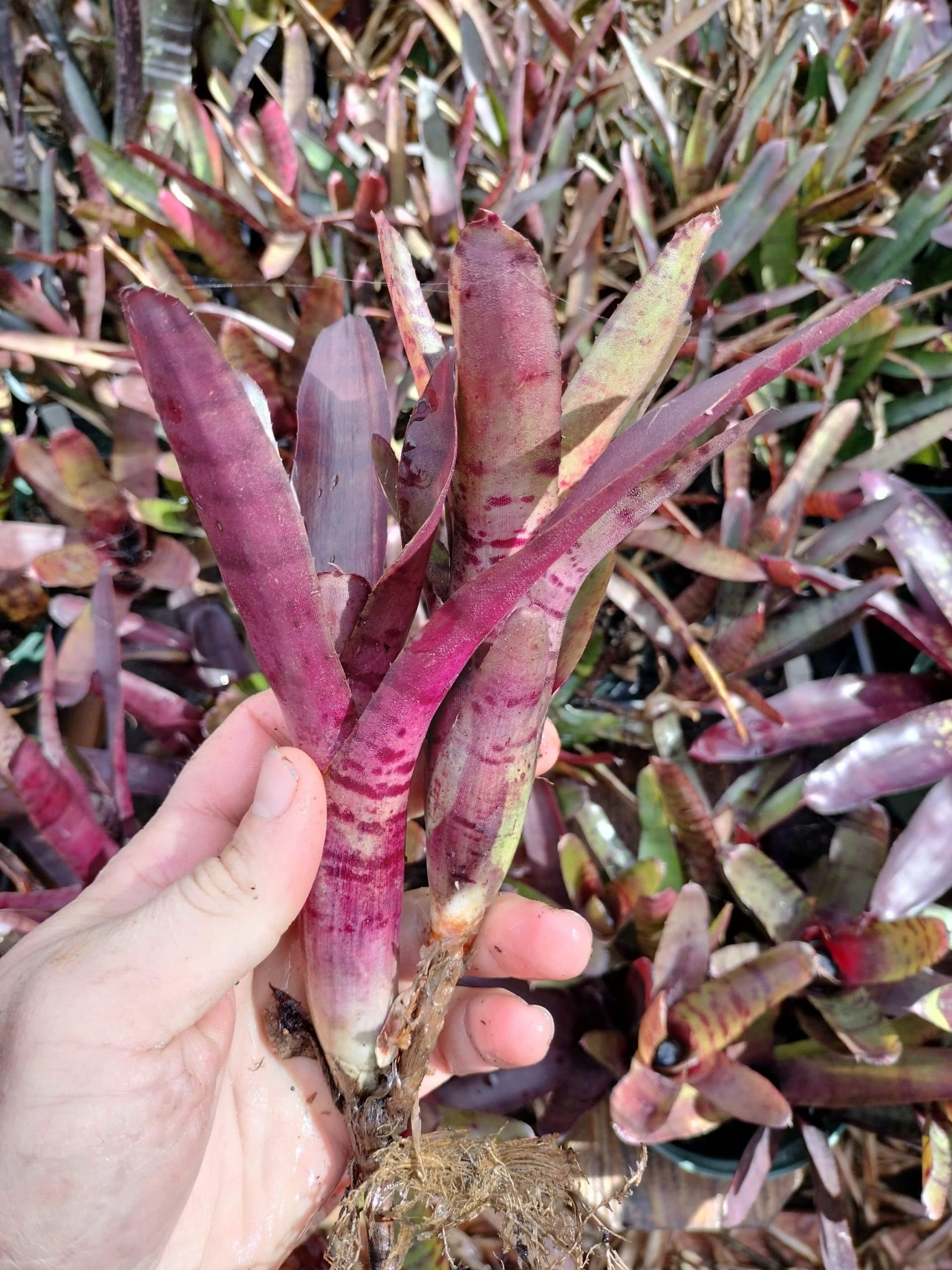 Neoregelia rubrifolia is a small species with small stolons. In strong light, the leaves blush red with the darker banding.