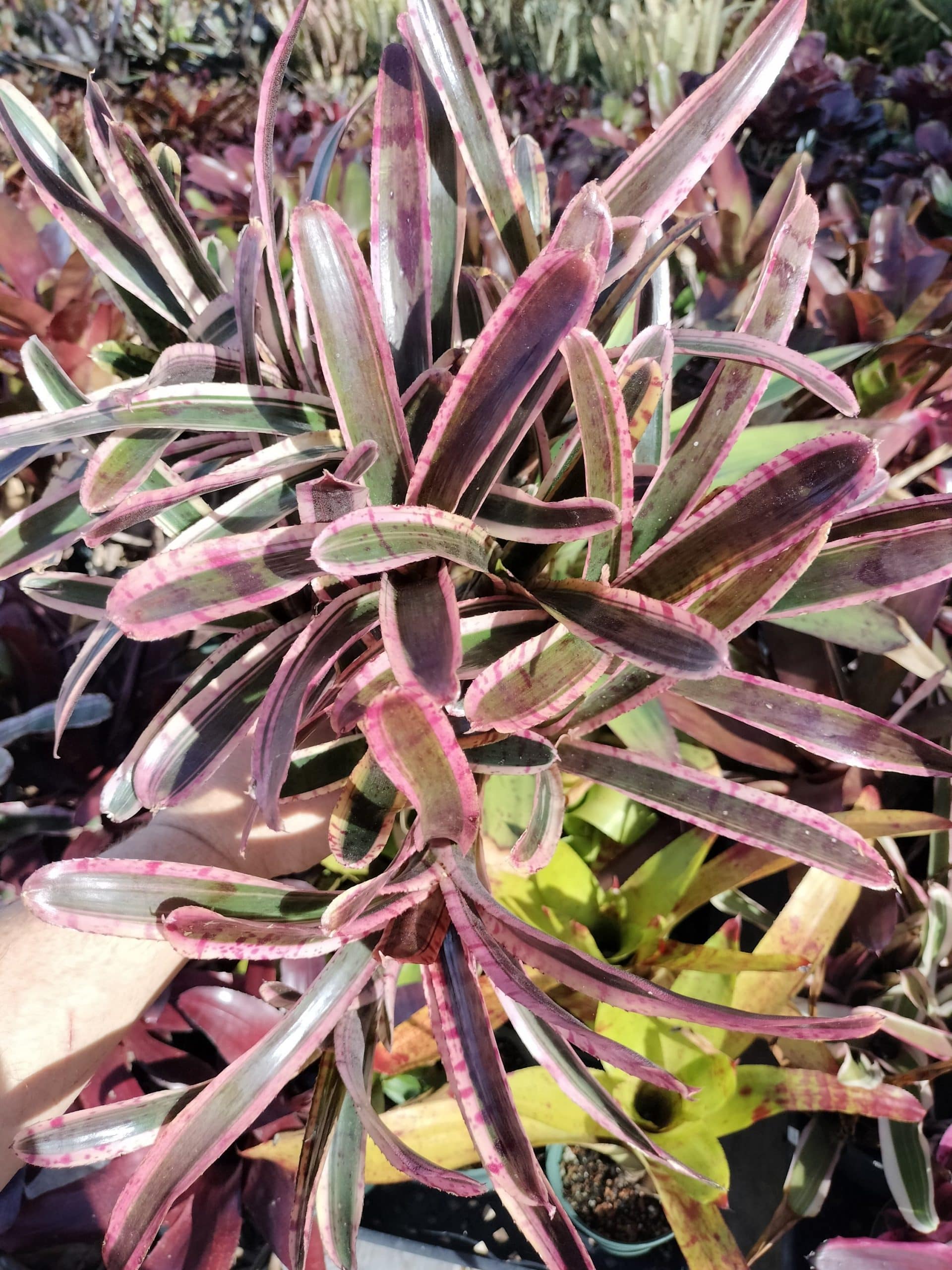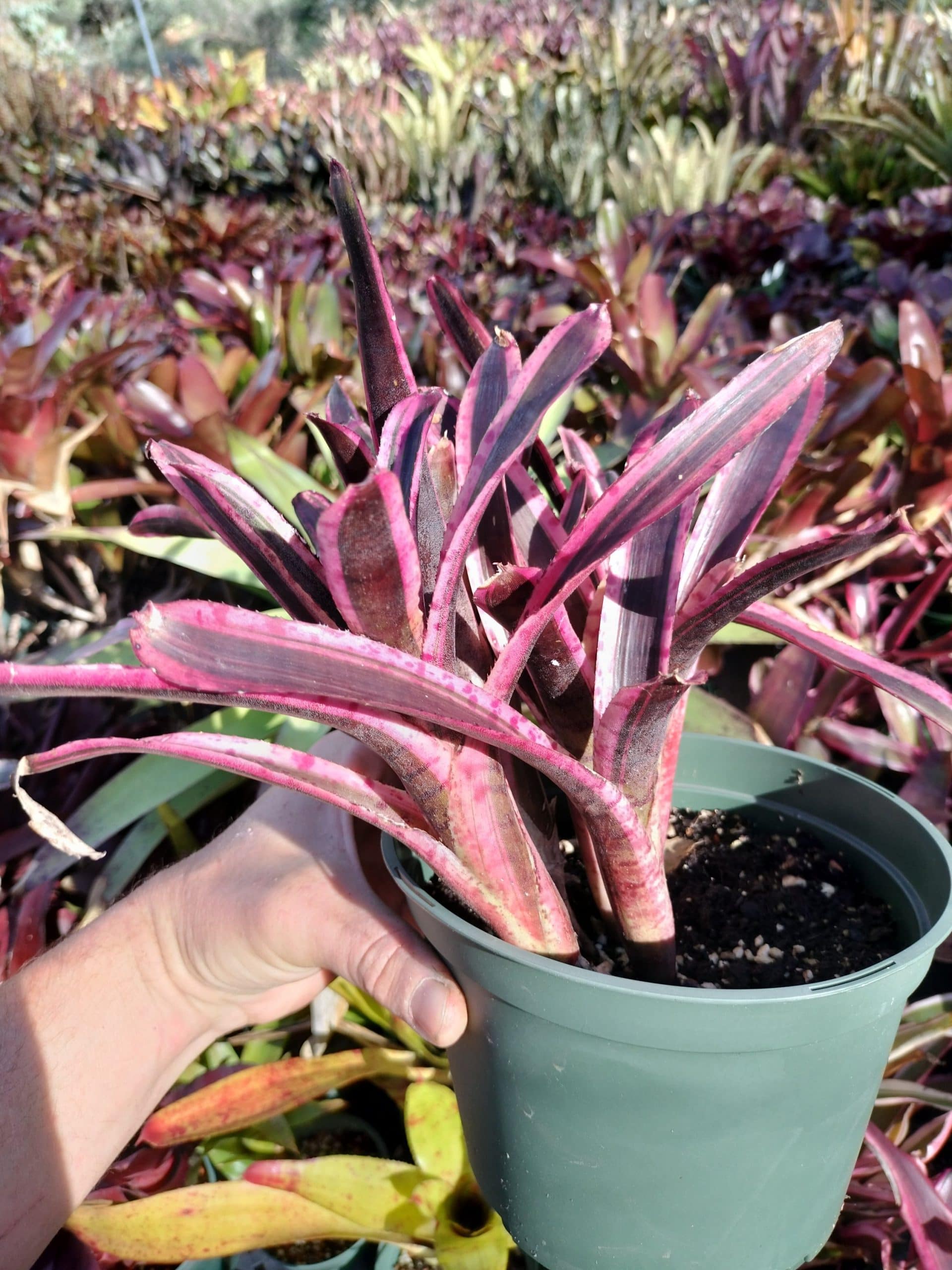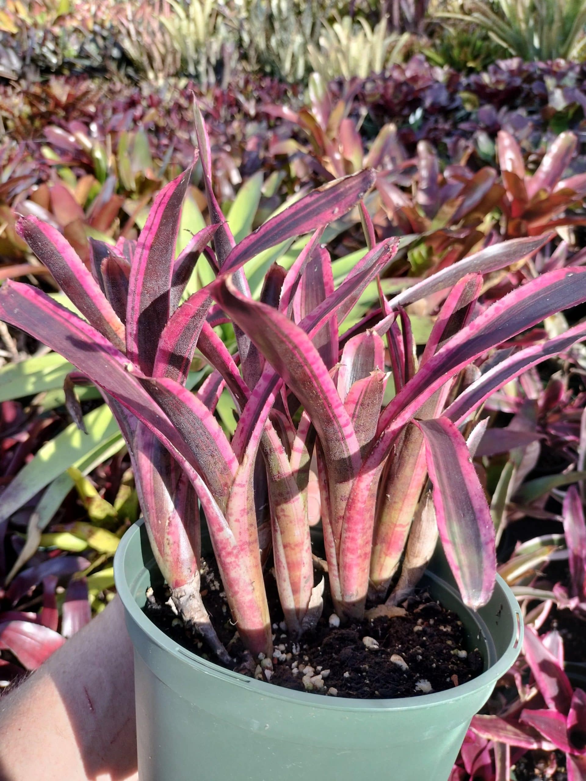 Neoregelia Star Fire is a mini from Chester Skotak with a hot pink-purple variegation.