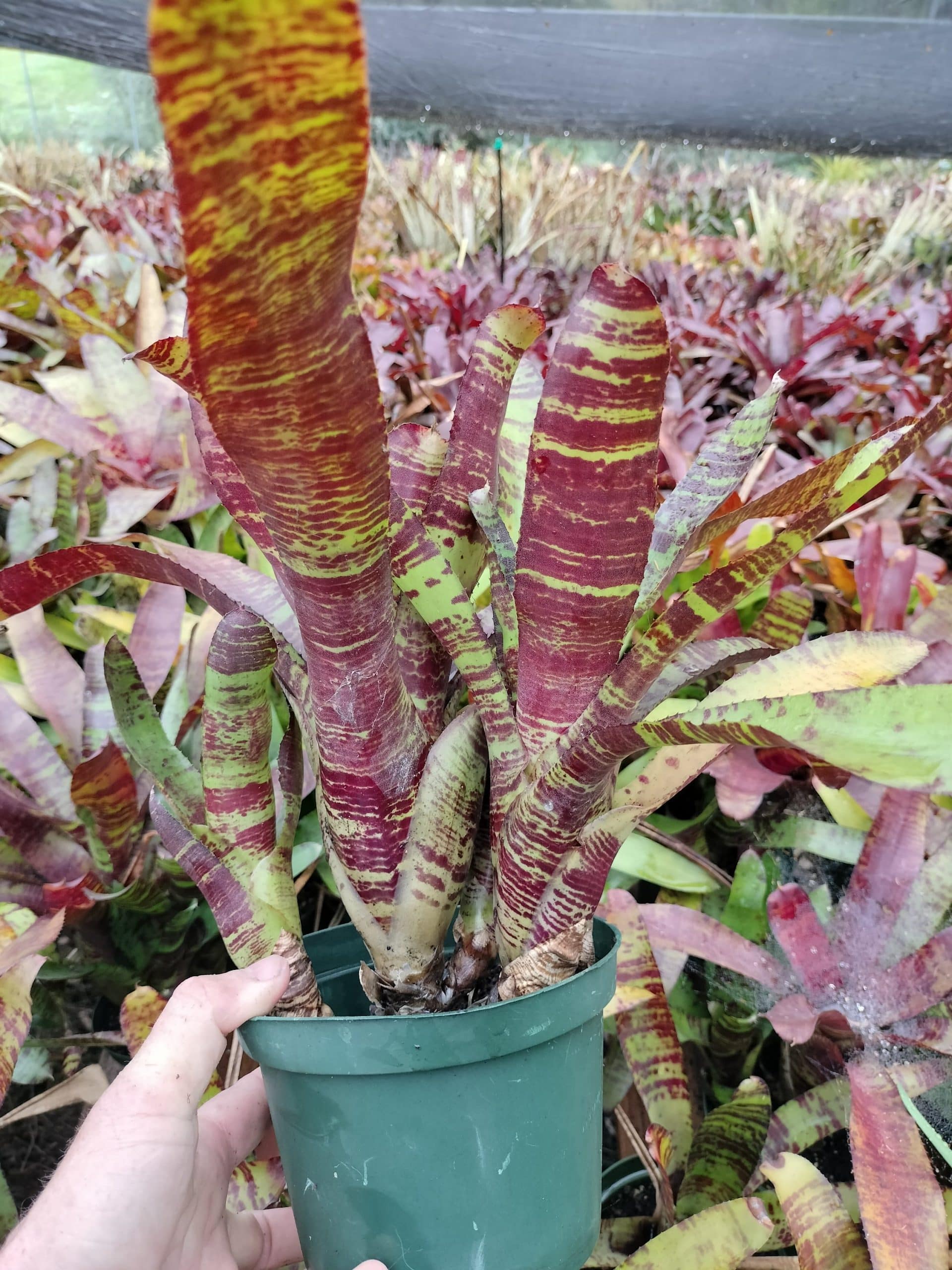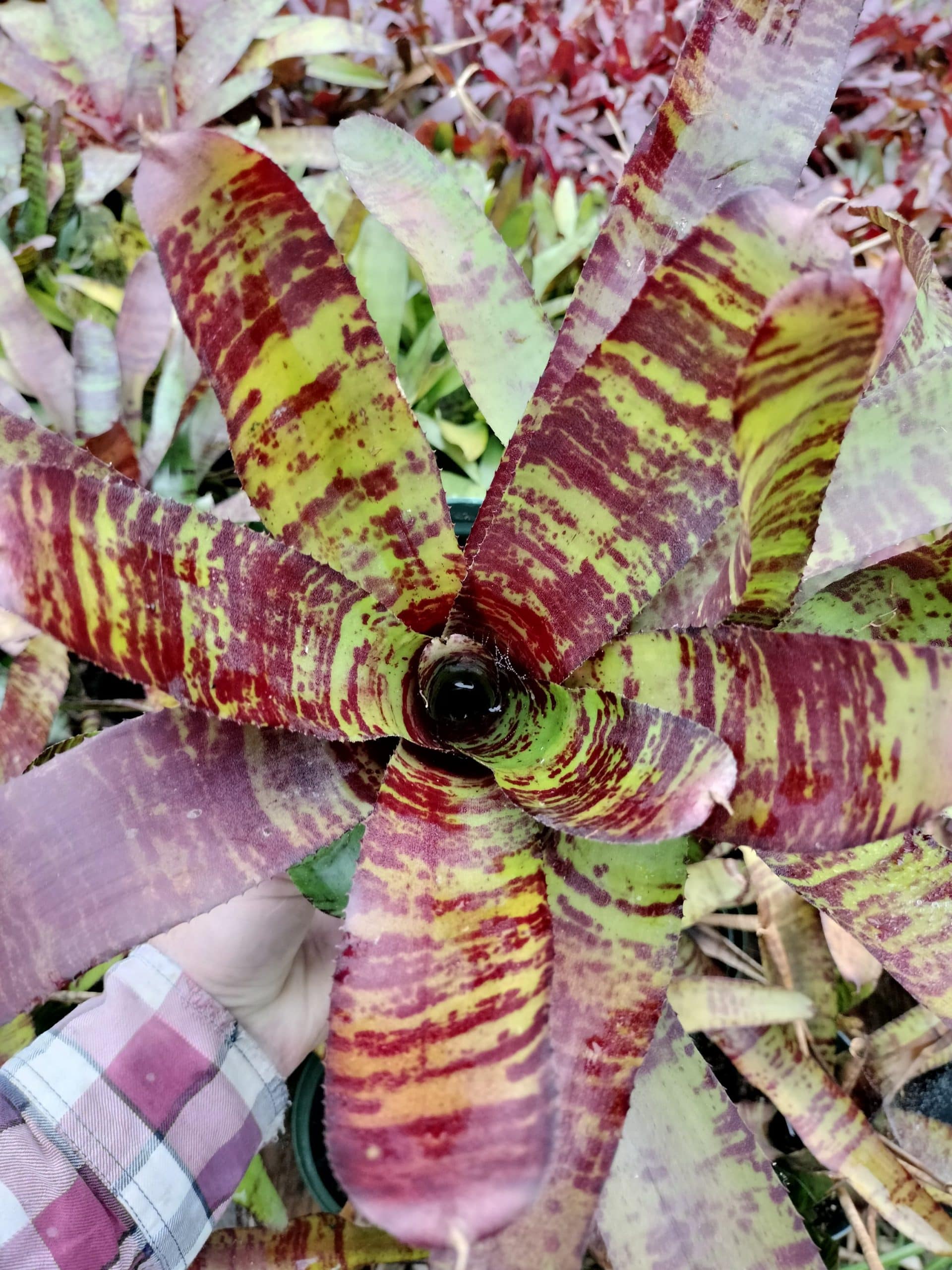 Neoregelia Tarnished is a Ray Coleman hybrid that stays more upright rather than having an open rosette.
