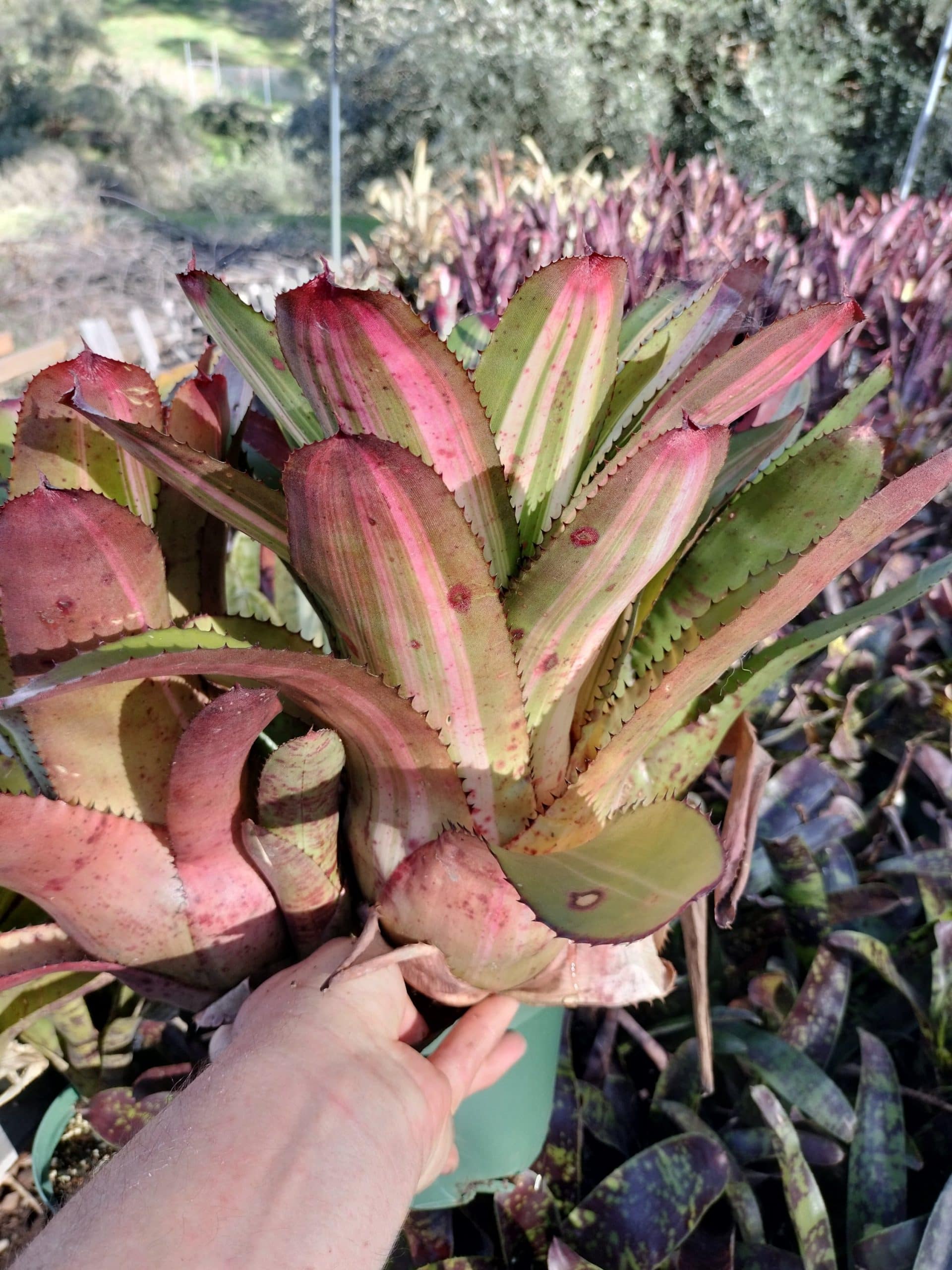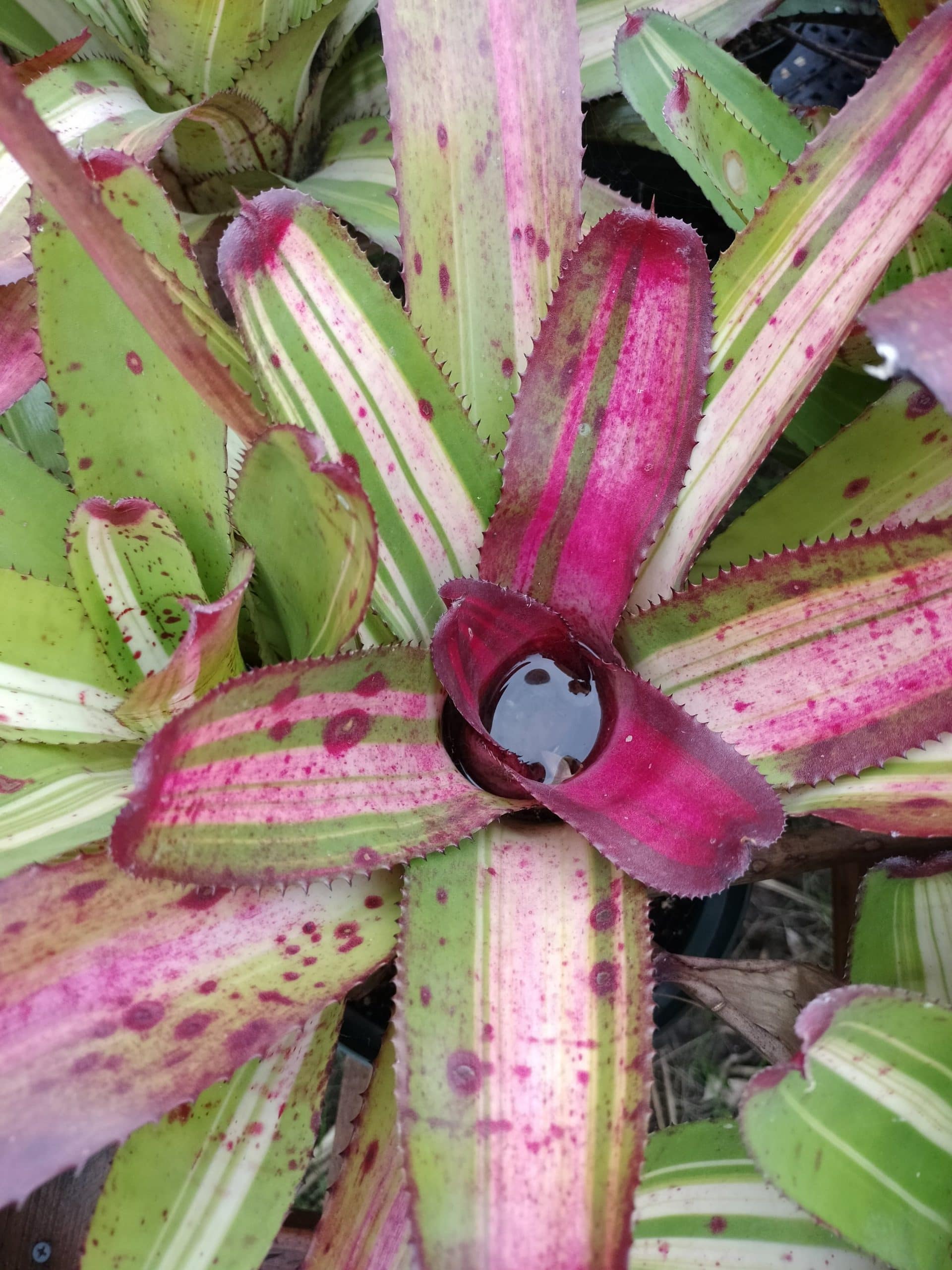 Neoregelia Unseasonably Hot is a Ray Coleman hybrid that lives up to its name. In the summer heat, it gets more and more red.