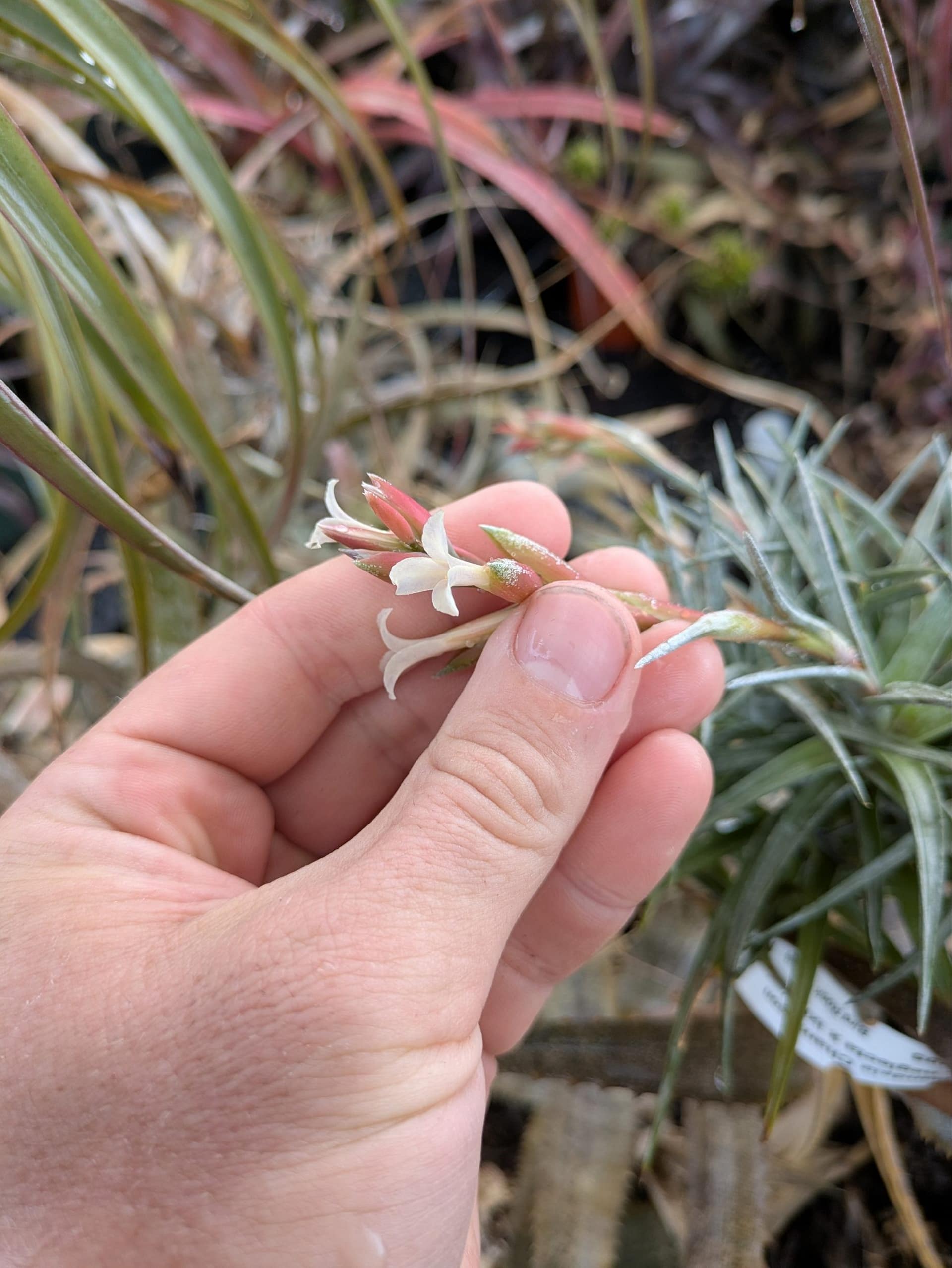 Tillandsia Chameleon (T. neglecta x ixioides) is an interesting hybrid made by Pam Koide-Hyatt. Curiously, the petals change color over the several days that they are open.