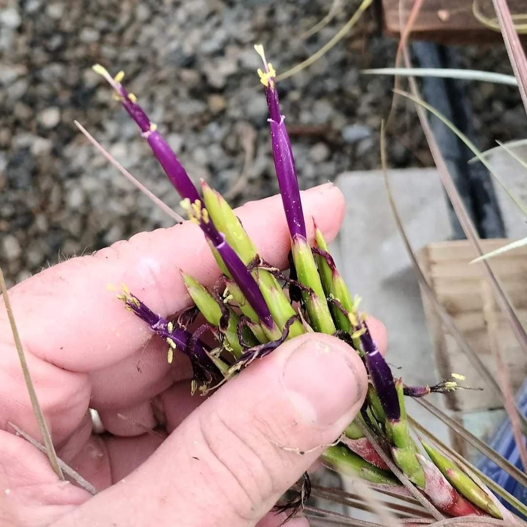 Tillandsia concolor x hammeri is a natural hybrid from Oaxaca that is a strong grower with definite hybrid vigor. Very similar to the verse cross natural hybrid, but more compact as you would expect from the maternal effect–T. concolor passing on its more compact stature.