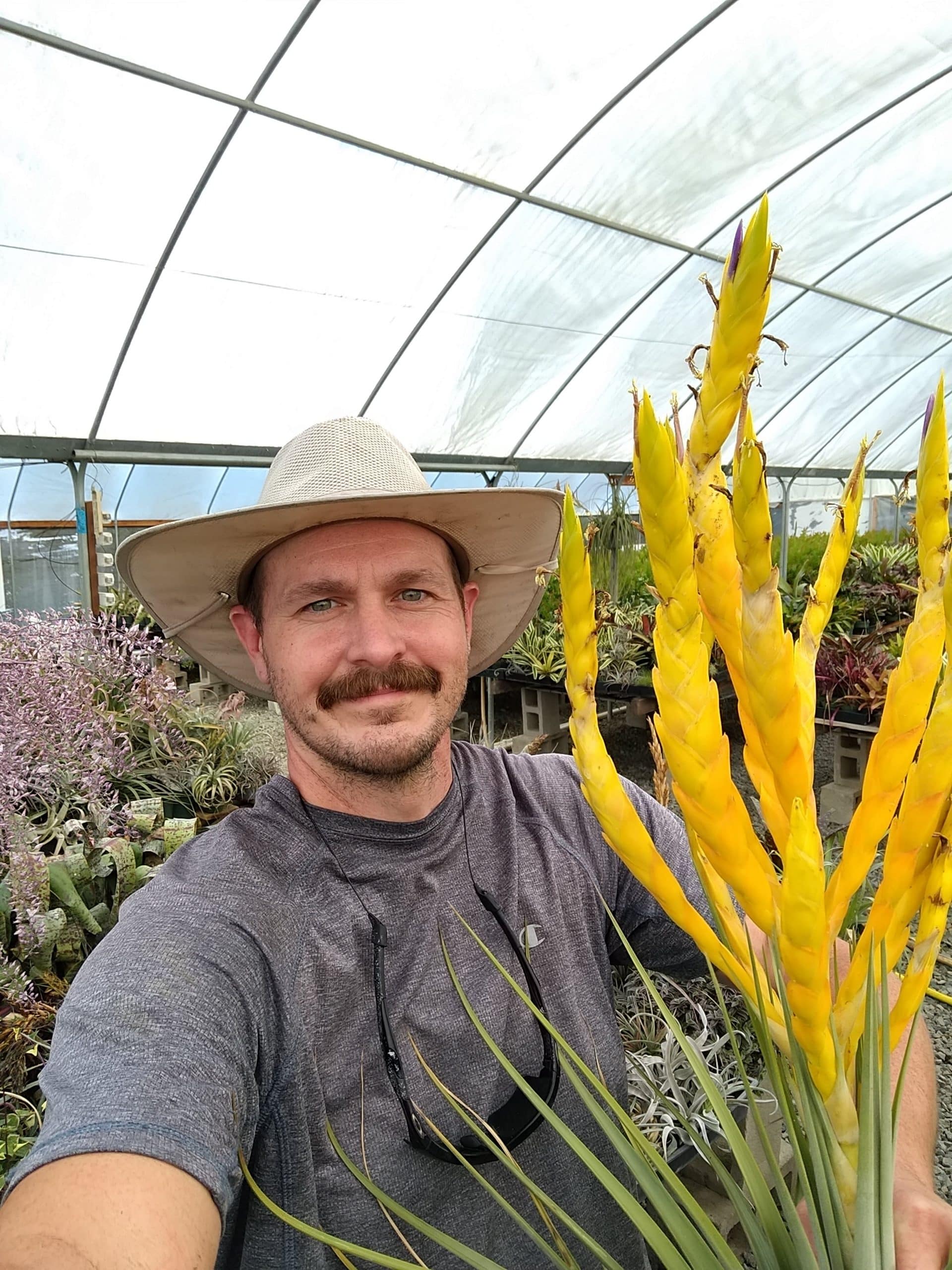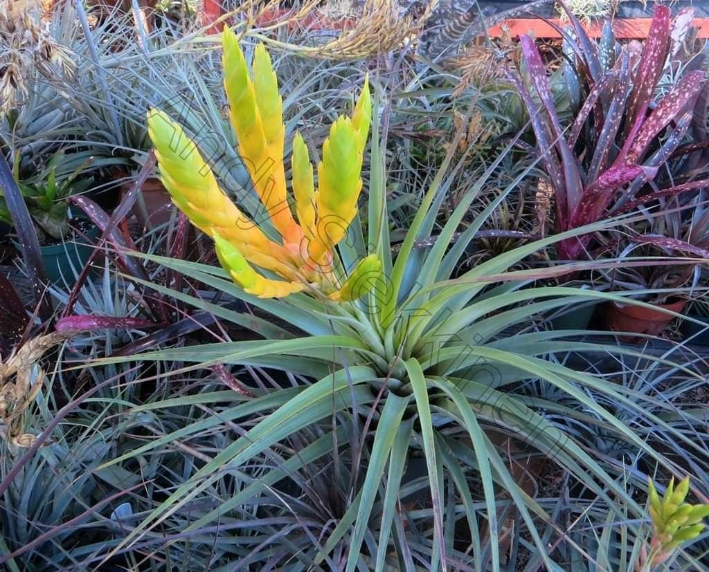 This Tillandsia is magnificent. A large plant with lots of hefty to it, it produces a vibrant yellow inflorescence. Pups available.