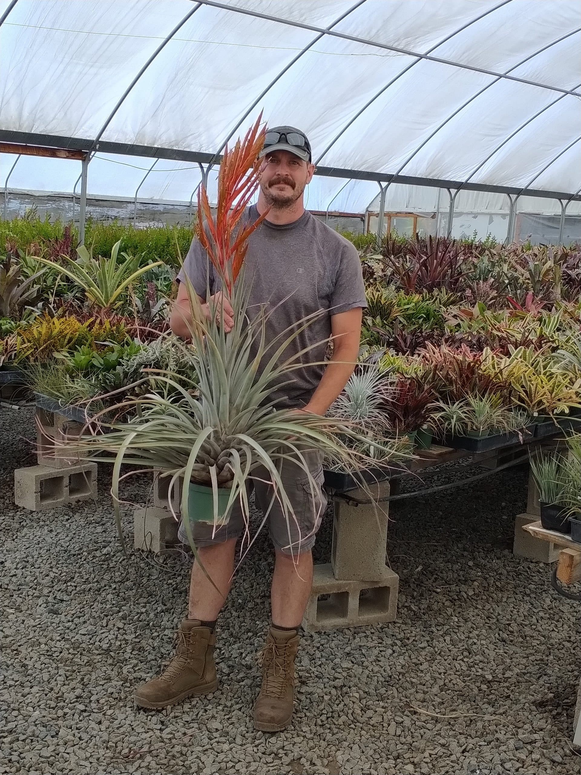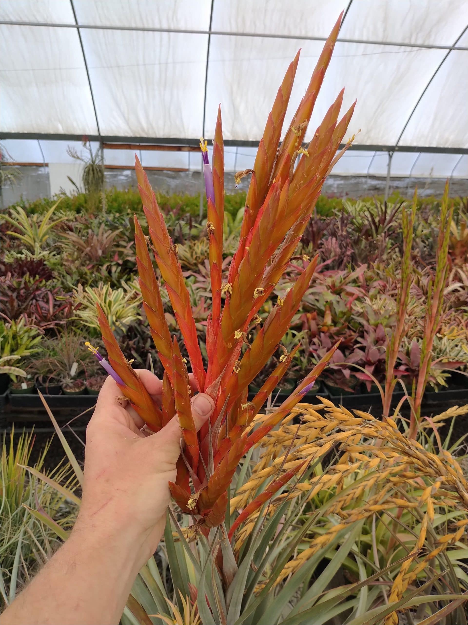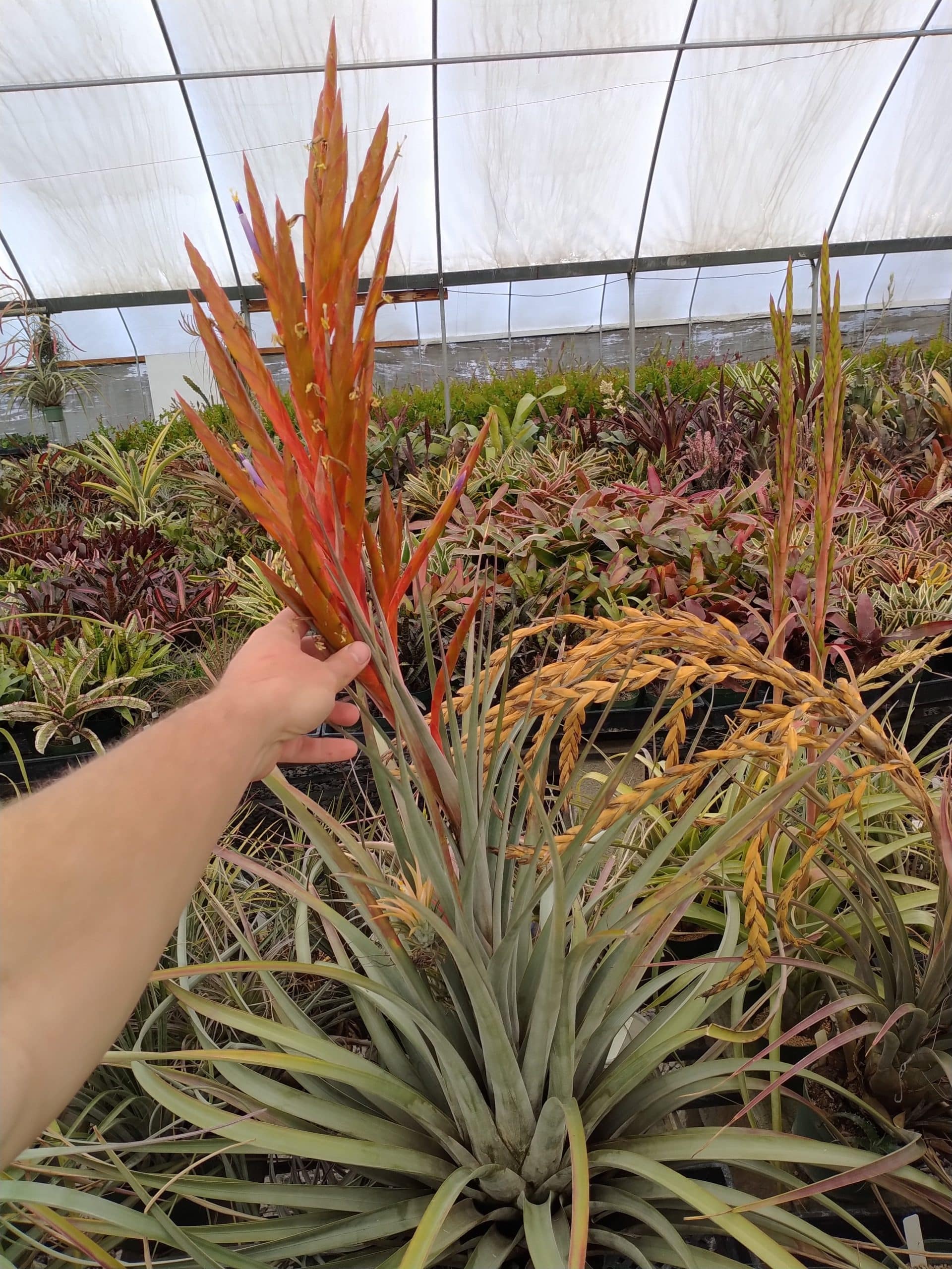 Tillandsia fasciculata x makoyana is a large natural hybrid from Oaxaca. Large and sturdy, it grows well and produces an impressive inflorescence.