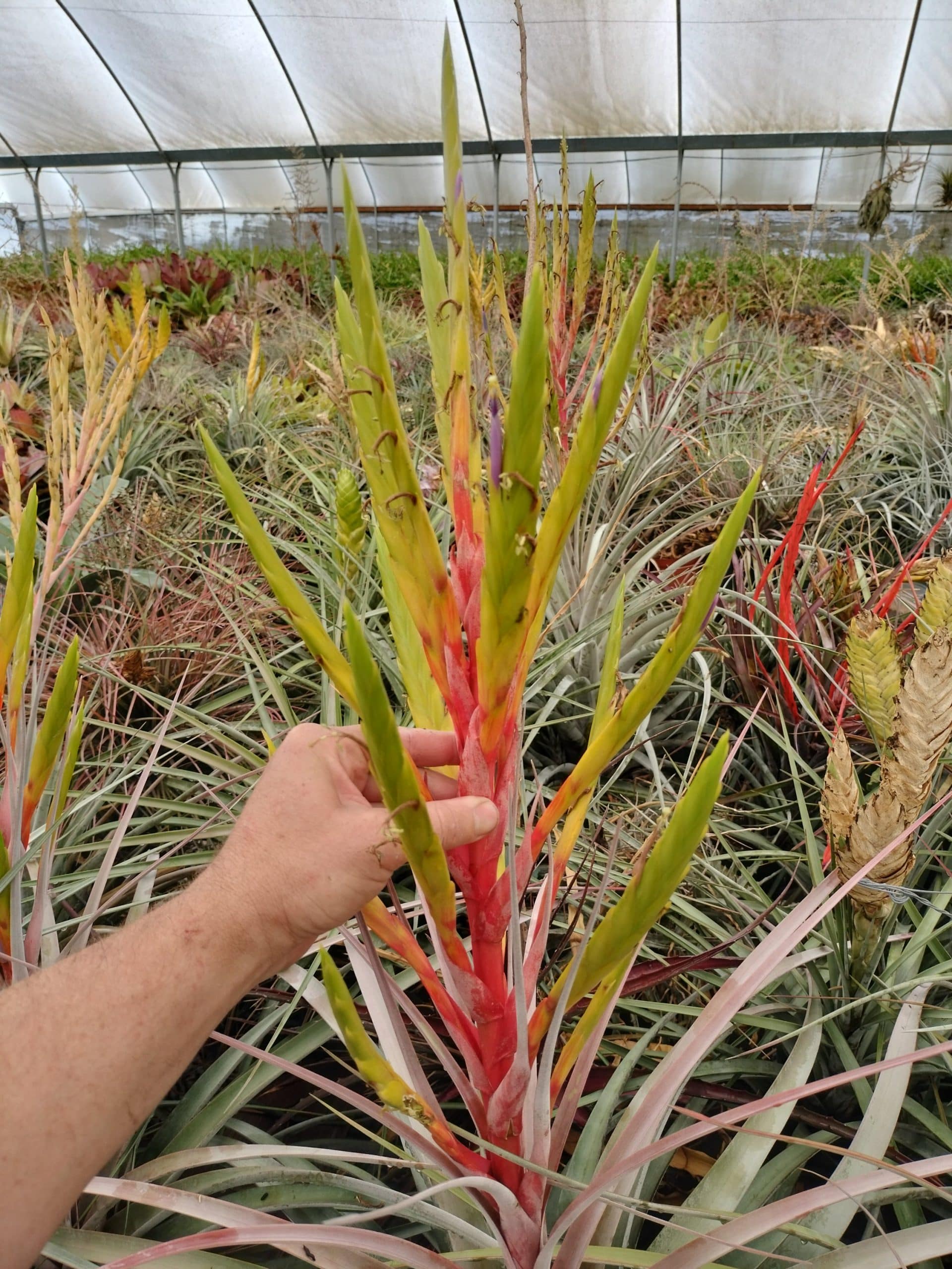 Tillandsia Fireworks is another great Mark Dimmitt hybrid. This one is Tillandsia xerographica (likely tomasellii) x roland-gosselinii. It blooms large and bright, just like fireworks!